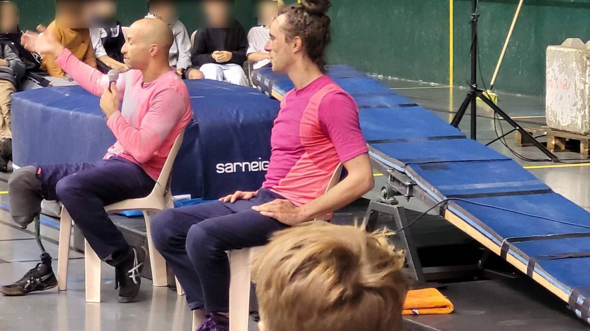 Après un spectacle plein d'humour et de prouesses acrobatiques au mât chinois, au cerceau ou encore à la bascule coréenne, les jeunes du collège et du lycée ont pu participer à un bord de scène et poser de nombreuses questions aux artistes tant sur le plan de la pratique du cirque que sur la volonté affichée de porter témoignage de leur propre expérience et du dépassement de soi face aux accidents de la vie.